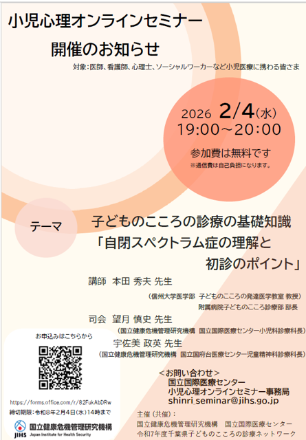 - 2026年2月4日に第3回小児心理オンラインセミナーを開催します。申し込み、詳細はこちら。